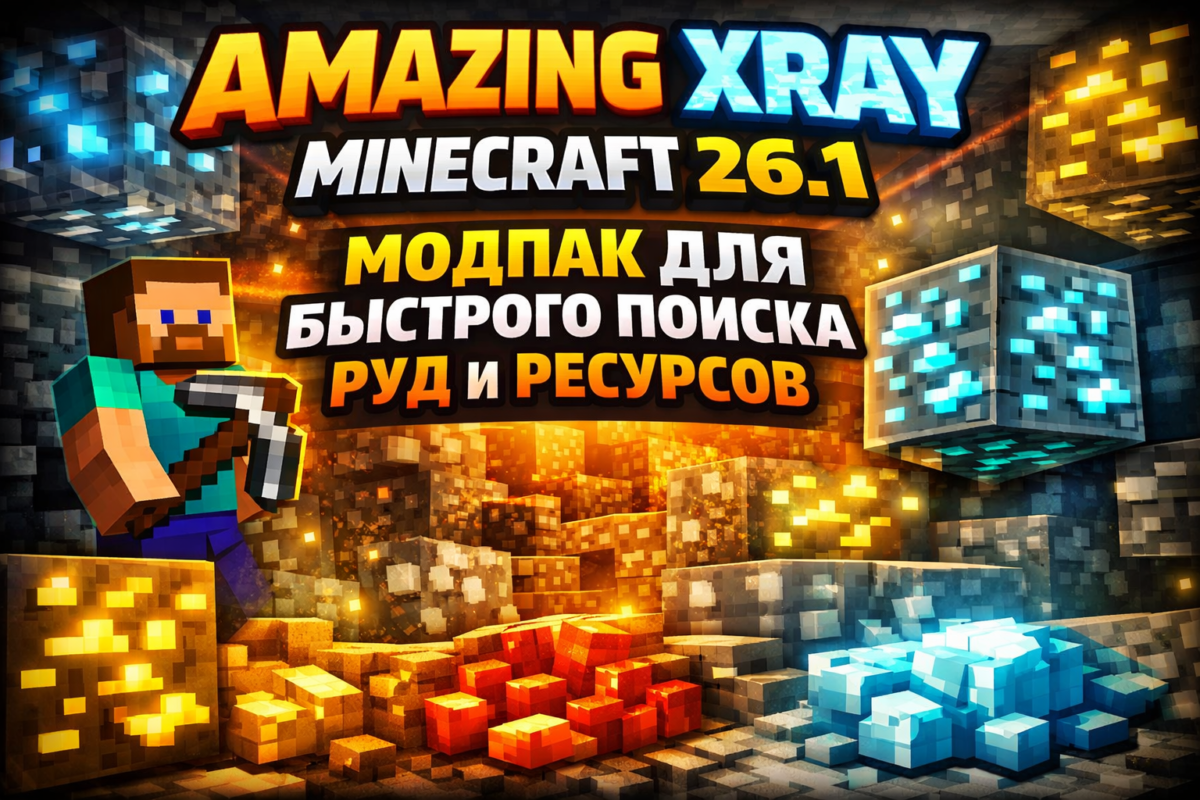Amazing Xray для Minecraft 26.1 уже вышел. Популярный Xray-модпак получил свежую версию на Fabric и подойдет тем, кто ищет руды быстрее.