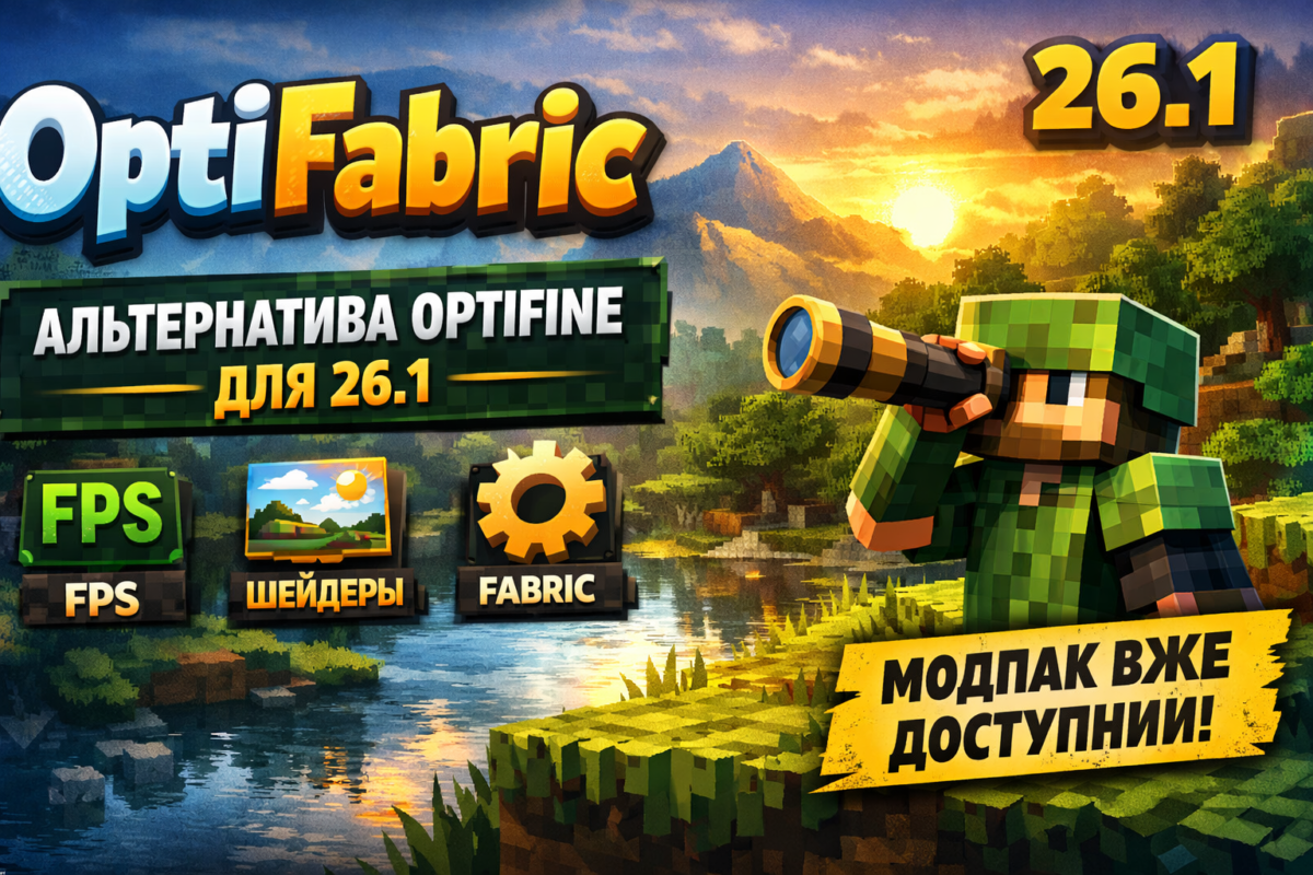 OptiFabric для Minecraft 26.1 уже доступен. Это лёгкий Fabric-модпак как альтернатива OptiFine: больше FPS, поддержка шейдеров и полезные визуальные функции.