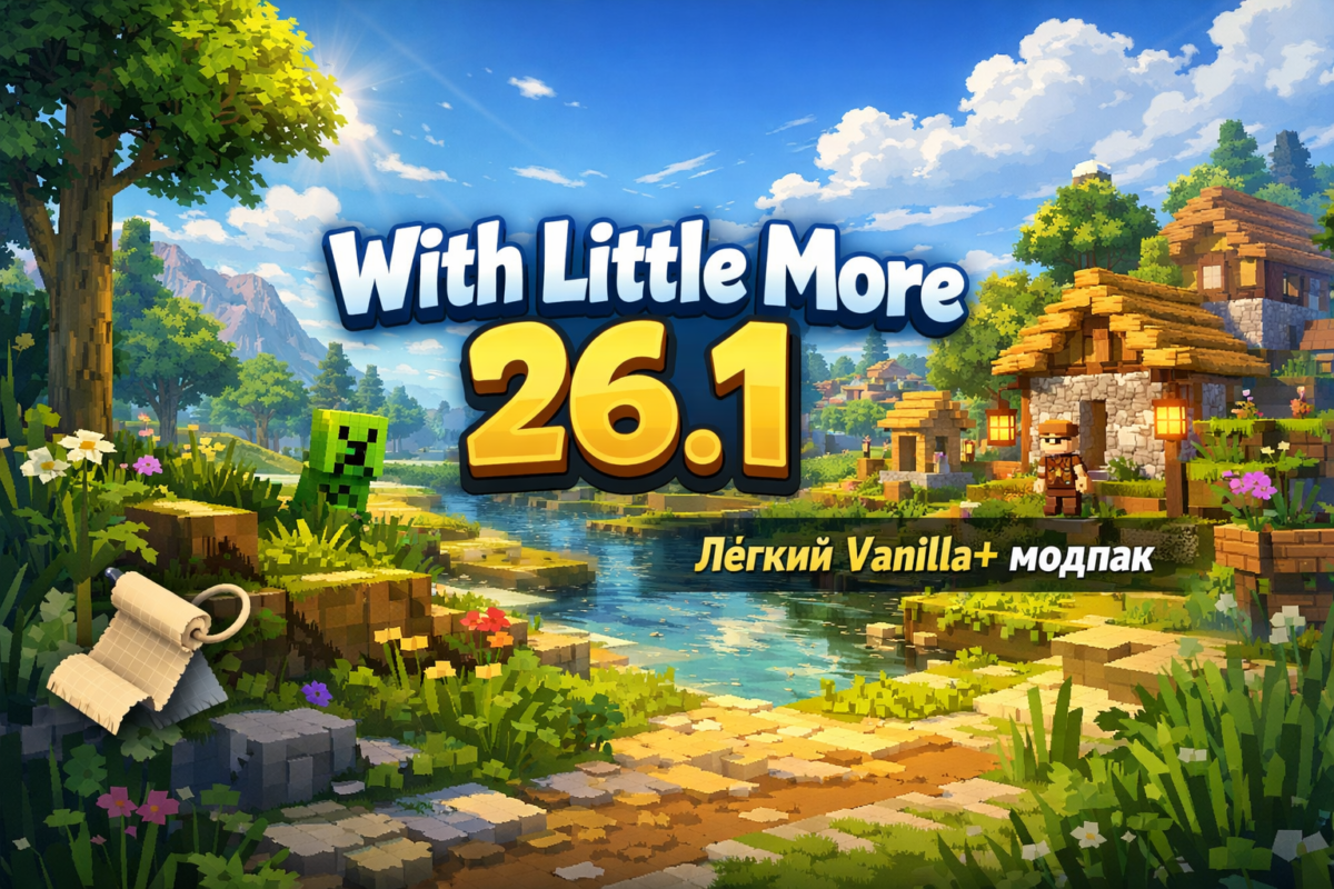 With Little More для Minecraft 26.1 уже доступен. Это лёгкий Fabric-модпак с упором на оптимизацию, удобство и улучшенный vanilla+ геймплей.