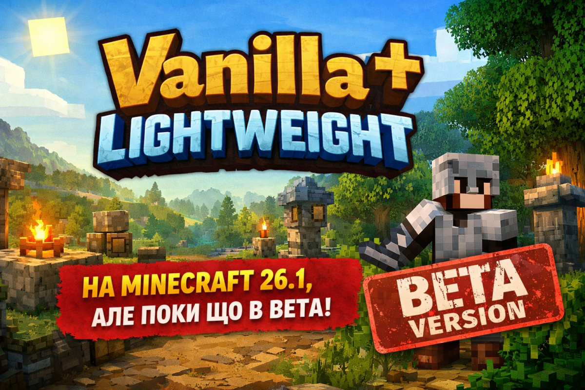 Vanilla+ Lightweight уже получил версию для Minecraft 26.1. Это лёгкий vanilla+ модпак на Fabric, но пока сборка находится на ранней beta-стадии.