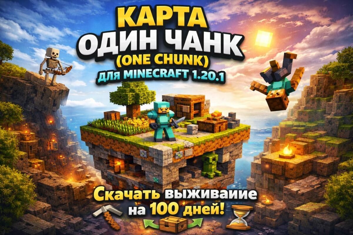 Карта Один Чанк (One Chunk) для Minecraft — скачать выживание на 100 дней