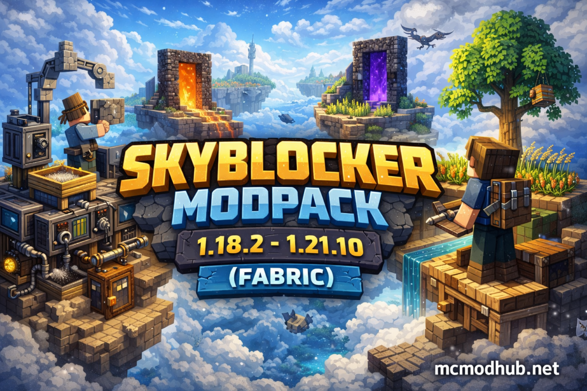 Skyblocker Modpack 1.18.2–1.21.10 Fabric — продвинутая Skyblock-сборка с автоматизацией, квестами и оптимизацией для стабильной игры на новых версиях.