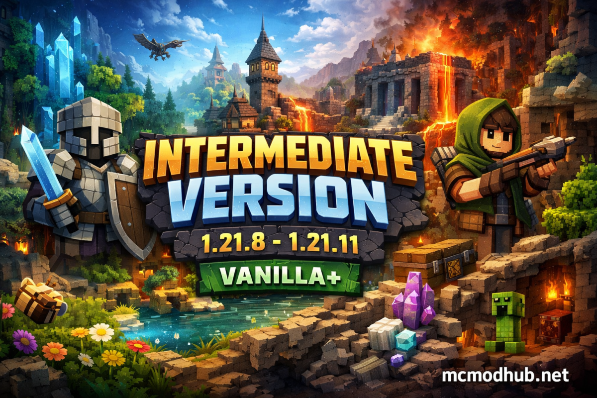 Intermediate Version 1.21.8–1.21.11 — это сбалансированный Vanilla+ модпак на NeoForge с новыми биомами, структурами, механиками и оптимизацией без лишнего хардкора