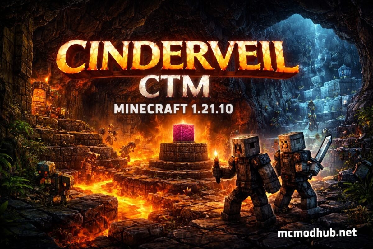 Cinderveil CTM — сложная карта выживания для Minecraft 1.21.10 в формате Complete The Monument. Исследуйте опасные биомы, собирайте ресурсы и завершите монумент, чтобы пройти испытание. Скачать карту бесплатно для Java Edition.
