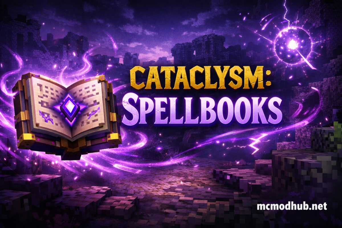 Cataclysm: Spellbooks — мод для Minecraft, который добавляет магические книги с уникальными заклинаниями. Используйте новые способности, усиливайте персонажа и разнообразьте бой в выживании. Поддержка Forge / NeoForge и версий игры 1.19.2–1.21.1.