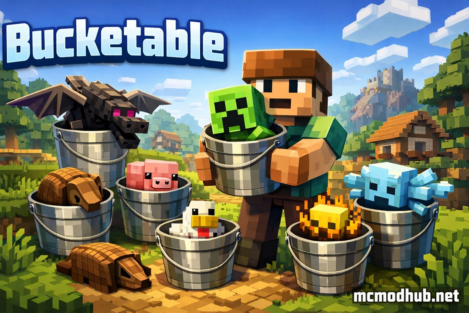 Bucketable — необычный мод для Minecraft, который позволяет ловить почти любых мобов в обычное ведро и переносить их куда угодно. Подходит для ферм, троллинга друзей, карт испытаний и просто нестандартного выживания.