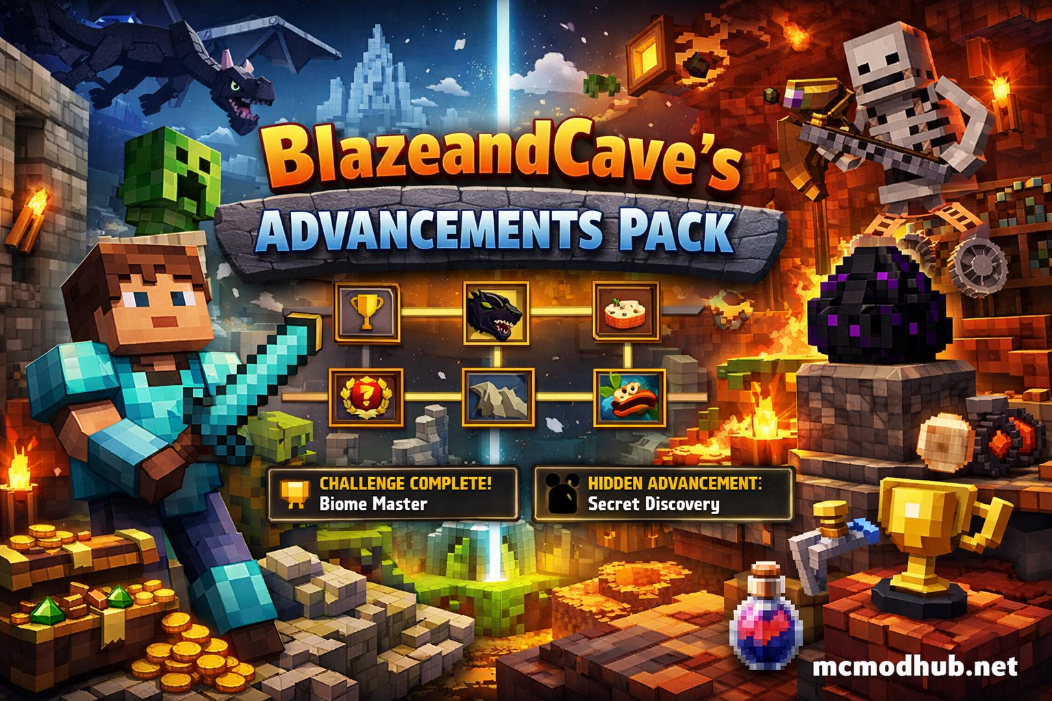 BlazeandCave’s Advancements Pack — популярный datapack для Minecraft, который добавляет более 1000 новых достижений. Новые цели, испытания и челленджи для выживания и серверов.
