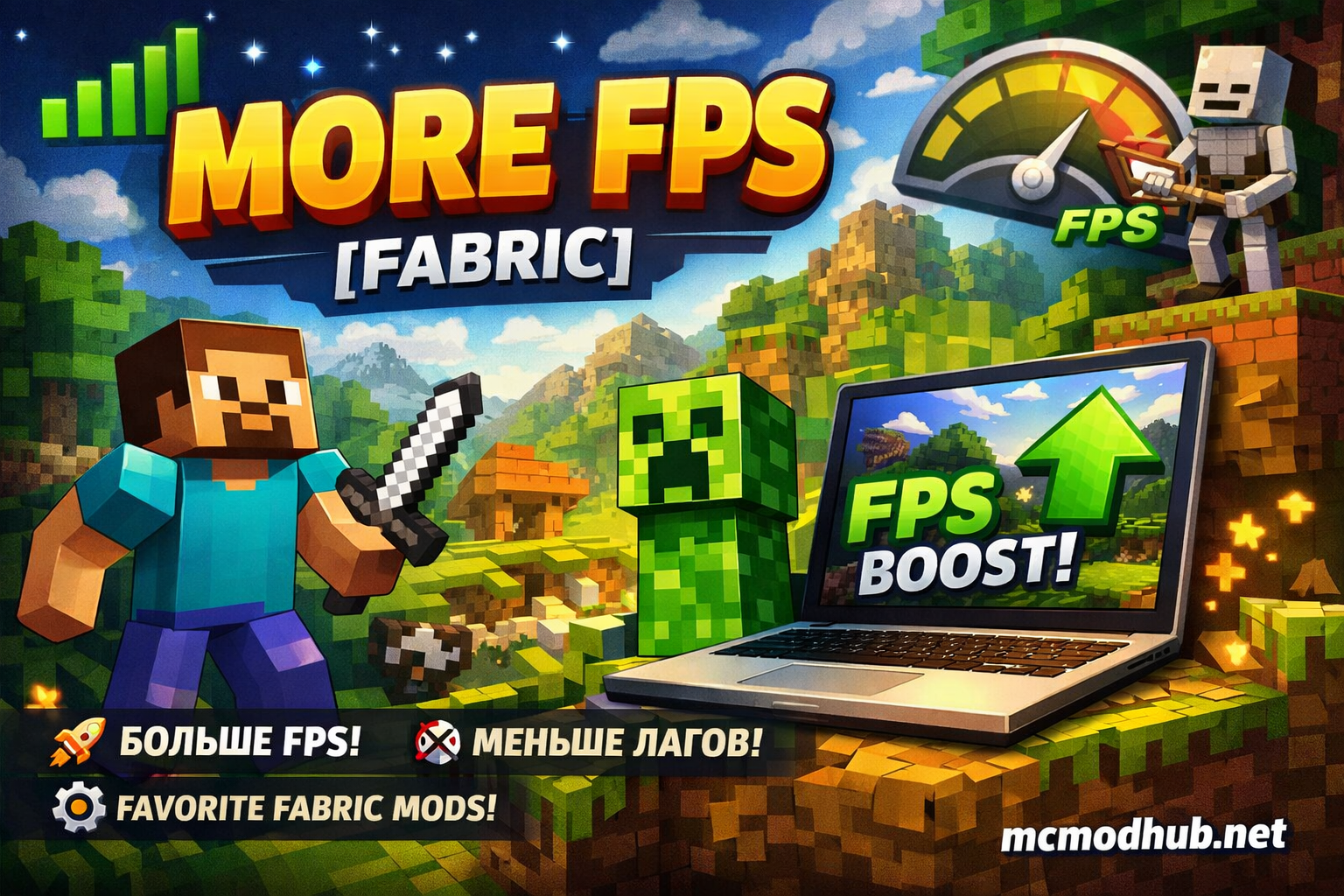 More FPS — лёгкий модпак для Minecraft, созданный специально для повышения FPS и оптимизации игры на слабых и средних ПК. Он объединяет популярные моды оптимизации (Sodium, Lithium и другие), уменьшая лаги, ускоряя загрузку мира и улучшая производительность без изменения геймплея.