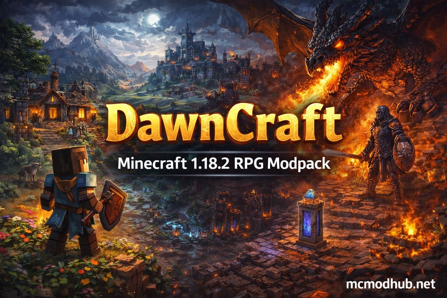 DawnCraft — это масштабный RPG-модпак для Minecraft 1.18.2, который превращает игру в полноценное приключение с квестами, боссами, новыми структурами и улучшенной боевой системой.